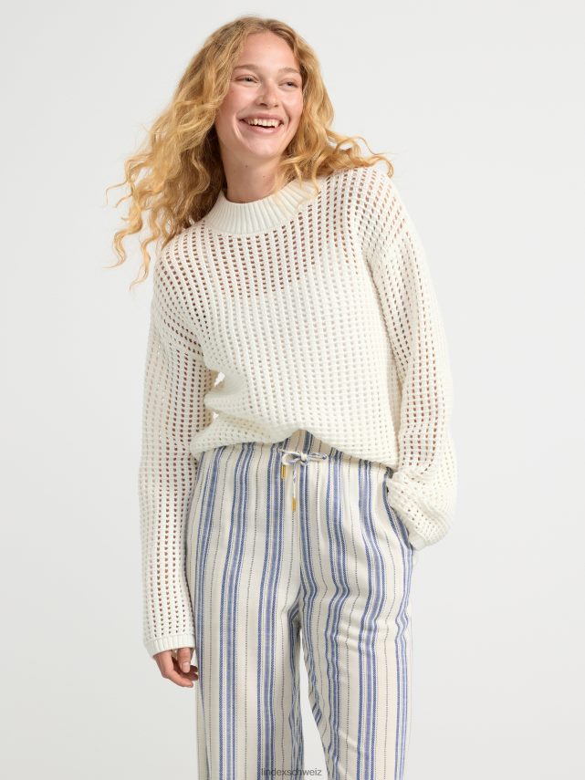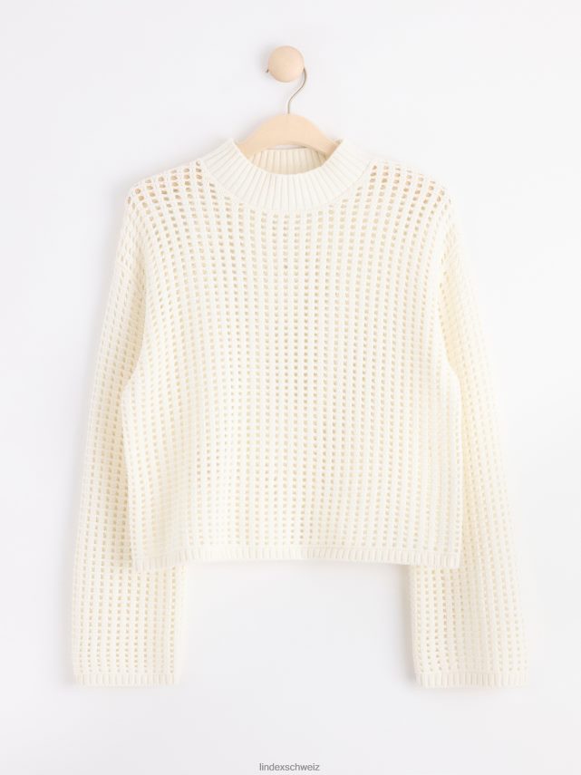 pull en maille à trous blanc légèrement poussiéreux Lindex vêtements femmes D44L8F769