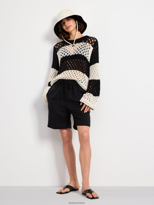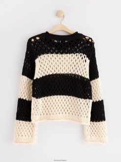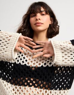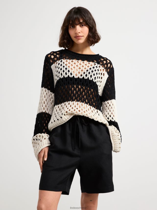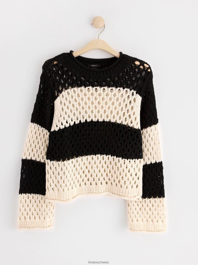 pull élégant en coton recyclé à manches longues, encolure ronde et coupe droite, réalisé dans un mélange de coton tricoté à trous. matériel. cette pièce est partiellement fabriquée en coton recyclé. en utilisant du coton recyclé, cela signifie que le coton qui a déjà été cultivé et qui aurait été gaspillé a une autre chance. c’est beaucoup plus économe en ressources et en eau par rapport à la culture de nouveau coton.