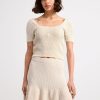 un pull élégant à manches courtes fabriqué dans un mélange de matières en maille fine, fini avec des bordures côtelées. matériel. cette pièce est partiellement réalisée en tencel lyocell. le matériau provient d’une foresterie responsable et est produit avec un impact moindre sur l’environnement. la production a lieu dans un système en boucle fermée où les produits chimiques sont réutilisés.