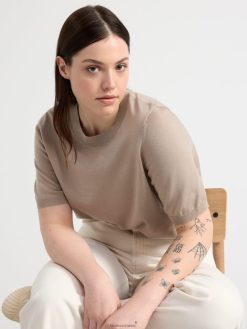 pull en maille de lyocell certifié à manches courtes, coupe droite et encolure ronde.