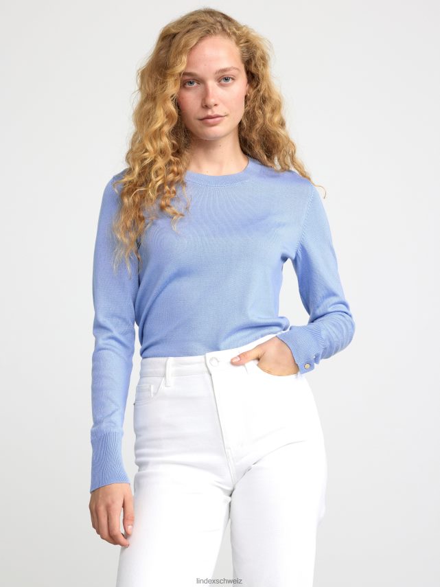 un pull doux en maille fine avec une encolure ronde, des boutons dorés aux extrémités des manches et une large bordure côtelée à l’ourlet du bas. matériel. cette pièce est partiellement réalisée en tencel lyocell. le matériau provient d’une foresterie responsable et est produit avec un impact moindre sur l’environnement. la production a lieu dans un système en boucle fermée où les produits chimiques sont réutilisés.