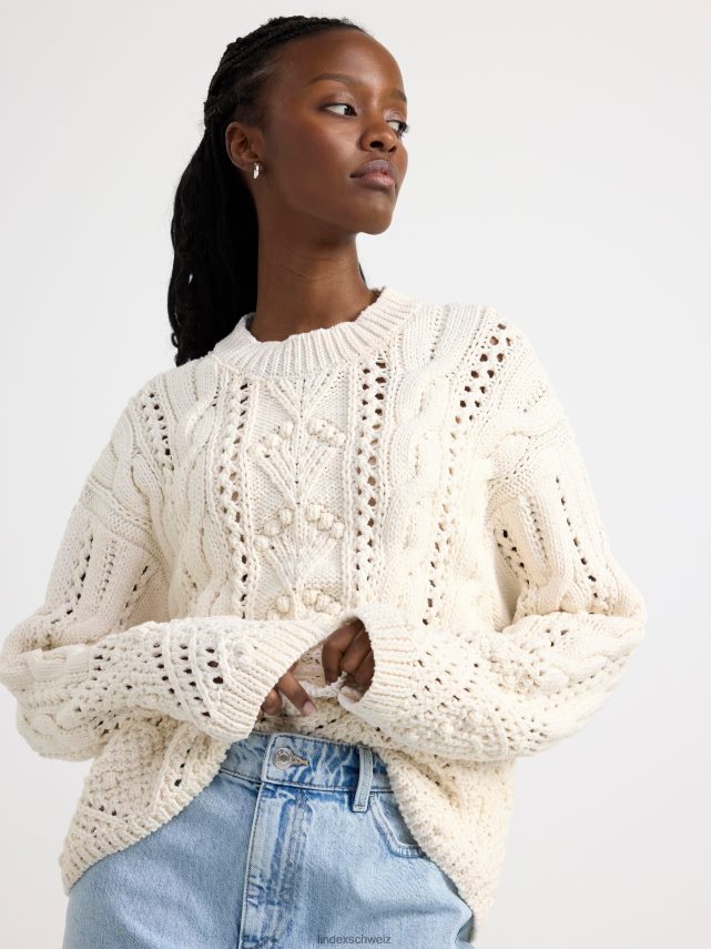 un gros pull en maille torsadée avec des épaules tombantes, des manches longues et une encolure ronde. matériel. cette pièce est partiellement fabriquée en coton recyclé. en utilisant du coton recyclé, cela signifie que le coton qui a déjà été cultivé et qui aurait été gaspillé a une autre chance. c’est beaucoup plus économe en ressources et en eau par rapport à la culture de nouveau coton.