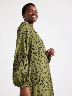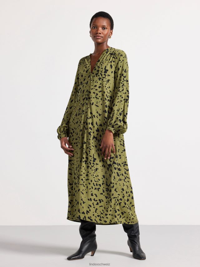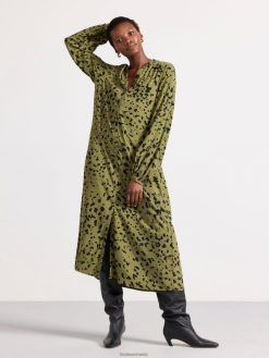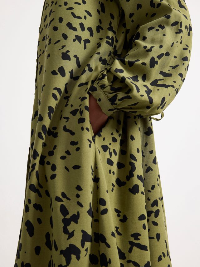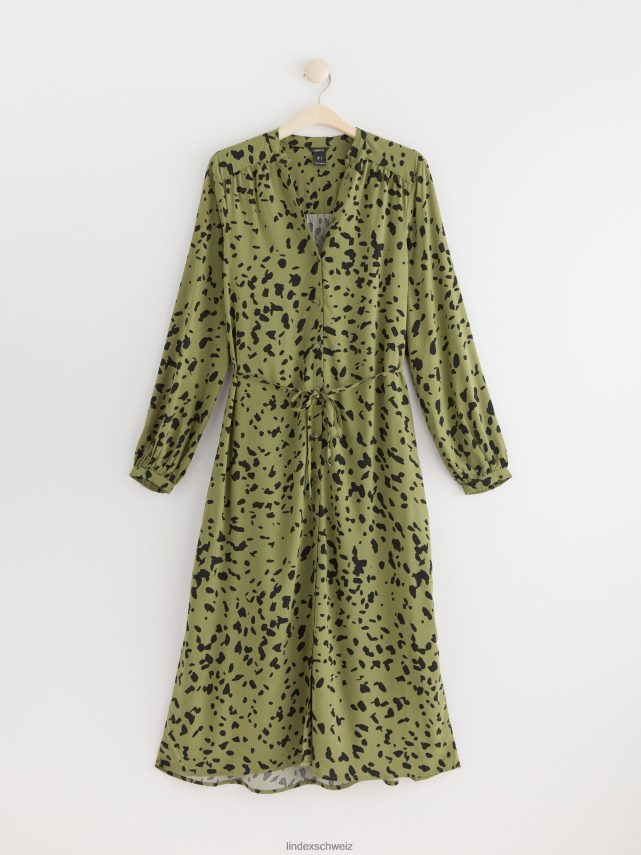 une robe fluide à manches longues avec boutonnage sur le devant et bande à nouer à la taille. notez que les trois premiers boutons en haut ne peuvent pas être fermés. matériel. cette pièce est basée une fois de plus sur sodra, une nouvelle matière première innovante en fibre de viscose, où des textiles recyclés sont combinés avec du bois issu de forêts gérées de manière responsable. oncemore est un matériau de haute qualité et est produit avec un impact moindre sur l’environnement par rapport aux matières premières en fibre de viscose conventionnelles.