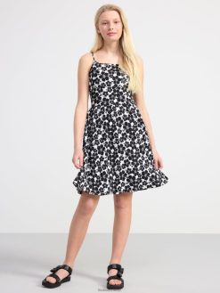 une robe fluide avec de fines bretelles, une taille froncée, des détails découpés dans le dos et des fleurs partout. matériel. cette pièce est fabriquée à partir de polyester recyclé. Lorsque l’on utilise du polyester recyclé, cela signifie que des matériaux qui ont déjà été produits, comme les bouteilles en PET, ont une autre chance. il est beaucoup plus économe en ressources que la production de nouveaux matériaux, ce qui le rend meilleur pour l’environnement et réduit l’impact climatique.