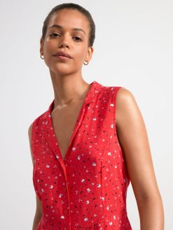 robe aérienne sans manches avec col, boutons sur le devant et ceinture à nouer à la taille, confectionnée en viscose douce. matériel. cette pièce est basée une fois de plus sur sodra, une nouvelle matière première innovante en fibre de viscose, où des textiles recyclés sont combinés avec du bois issu de forêts gérées de manière responsable. Oncemore est un matériau de haute qualité et est produit avec un impact moindre sur l’environnement par rapport aux matières premières en fibre de viscose conventionnelles.