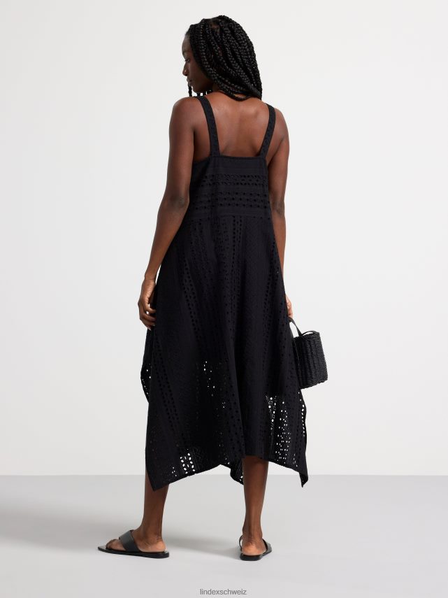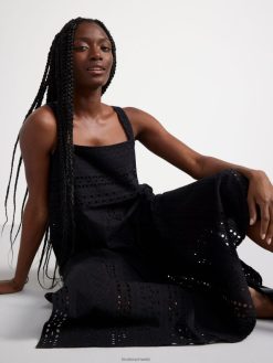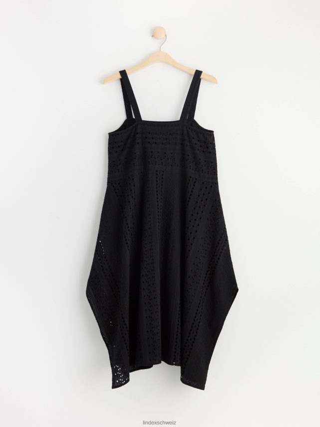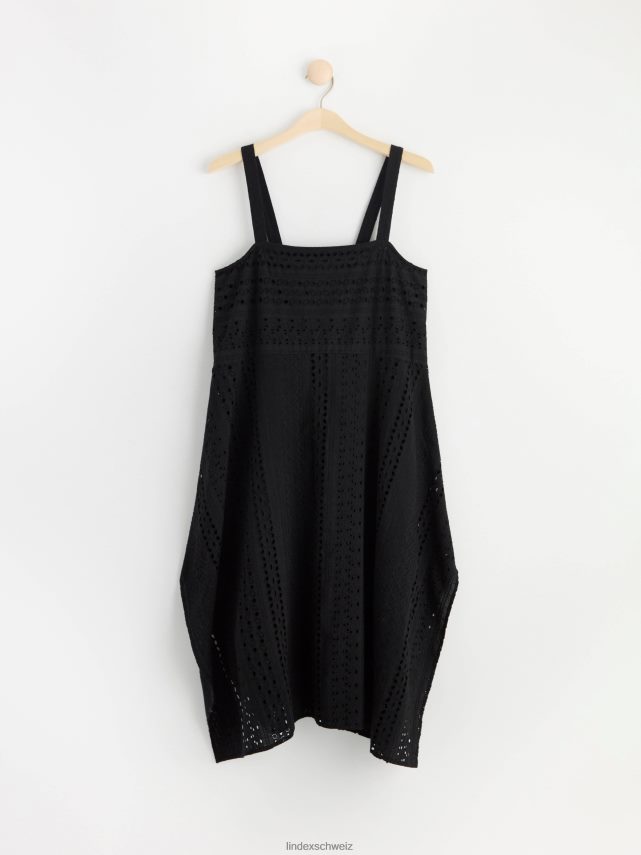 une robe mi-longue en coton doux avec une silhouette asymétrique, de larges bretelles et des broderies à trous sur l’ensemble. la robe d’été parfaite qui peut être portée de manière habillée ou décontractée en toute occasion.