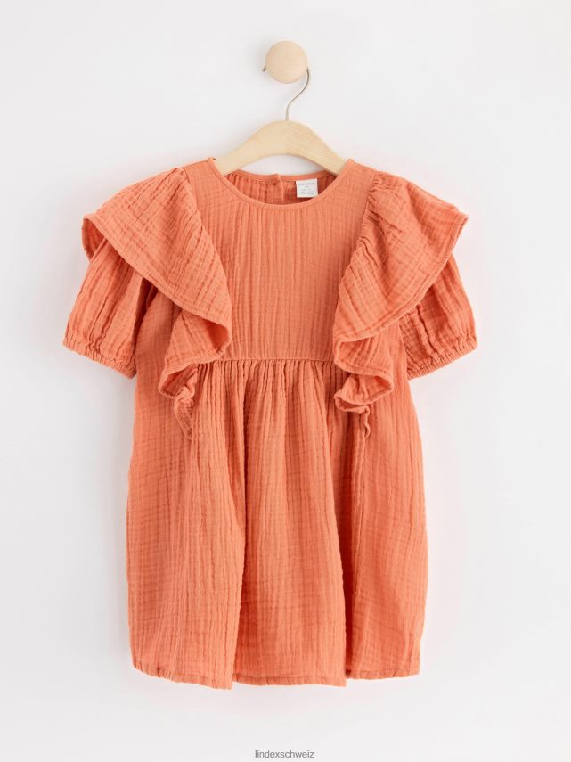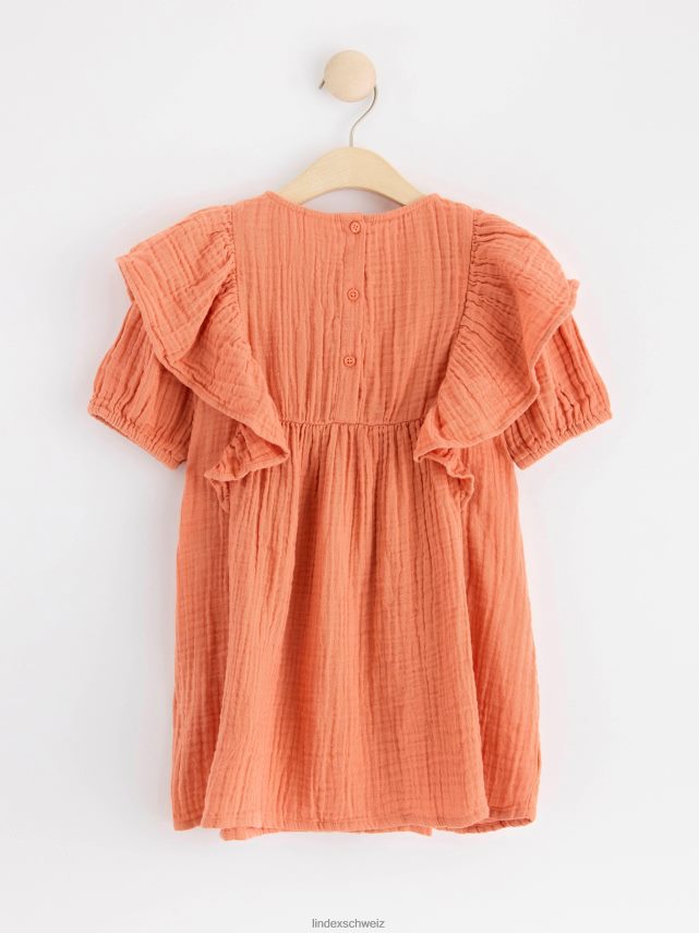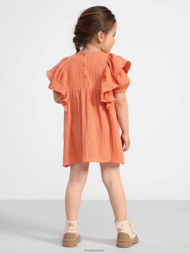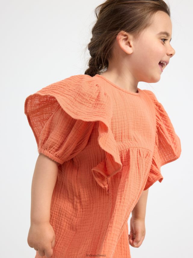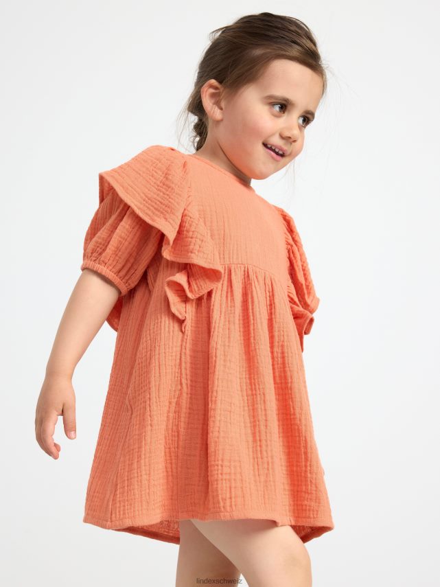 robe en coton froissé à manches courtes orange légèrement poussiéreux Lindex vêtements enfants D44L8F3090