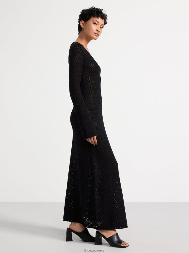 une robe à manches longues élégante et confortable avec un col en V et un motif en tricot troué sur l’ensemble. matériel. cette pièce est partiellement fabriquée en coton recyclé. en utilisant du coton recyclé, cela signifie que le coton qui a déjà été cultivé et qui aurait été gaspillé a une autre chance. c’est beaucoup plus économe en ressources et en eau par rapport à la culture de nouveau coton.