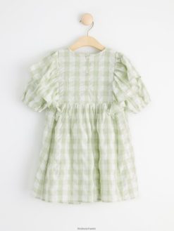 robe en seersucker à carreaux et manches courtes aqua légèrement poussiéreux Lindex vêtements enfants D44L8F3098