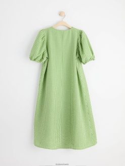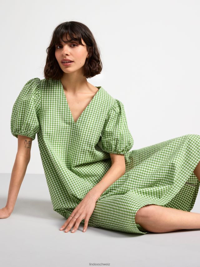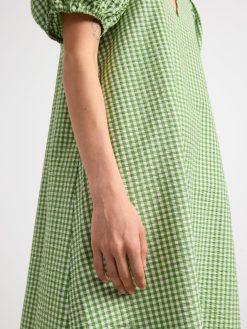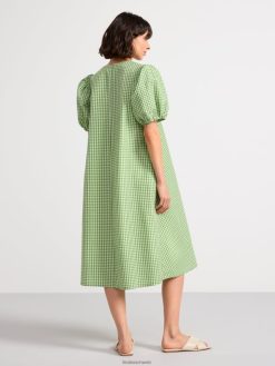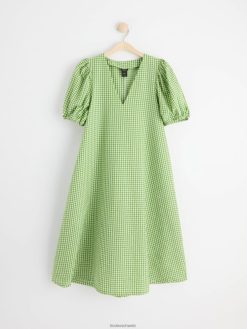 robe mi-longue avec manches courtes bouffantes et col en V, confectionnée dans un mélange de coton impeccable.