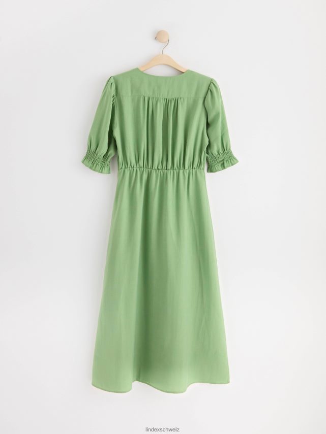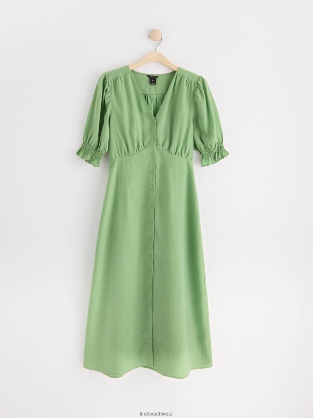 Robe midi en lyocell certifié avec manches courtes bouffantes, col en V et boutons sur le devant. matériel. cette pièce est partiellement fabriquée à partir de fibres lyocell de marque tencel x refibra. La technologie refibra consiste à recycler les chutes de coton issues de la production de vêtements. jusqu’à un tiers de la pâte issue des déchets de coton recyclés issus de la fabrication de vêtements est combiné avec de la pâte de bois issue de forêts gérées durablement. le matériau est produit avec un impact moindre sur l’environnement. la production s’effectue dans un système en boucle fermée où les produits chimiques sont réutilisés. Tencel et Refibra sont des marques déposées de Lenzing AG.