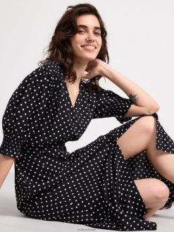 une robe fluide avec un motif à pois intégral confectionnée dans une matière douce et légère. matériel. cette pièce est fabriquée en écovero Lenzing, une option plus durable par rapport à la viscose conventionnelle. le matériau provient d’une foresterie responsable et est produit avec un impact moindre sur l’environnement.