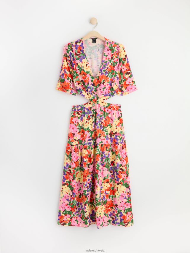 robe midi à manches courtes avec découpes rose Lindex vêtements femmes D44L8F91