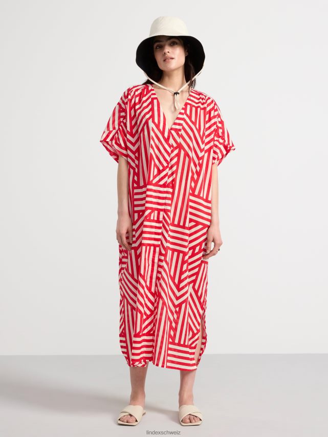 une robe midi caftan à manches courtes avec un motif intégral et une bande à nouer à la taille.