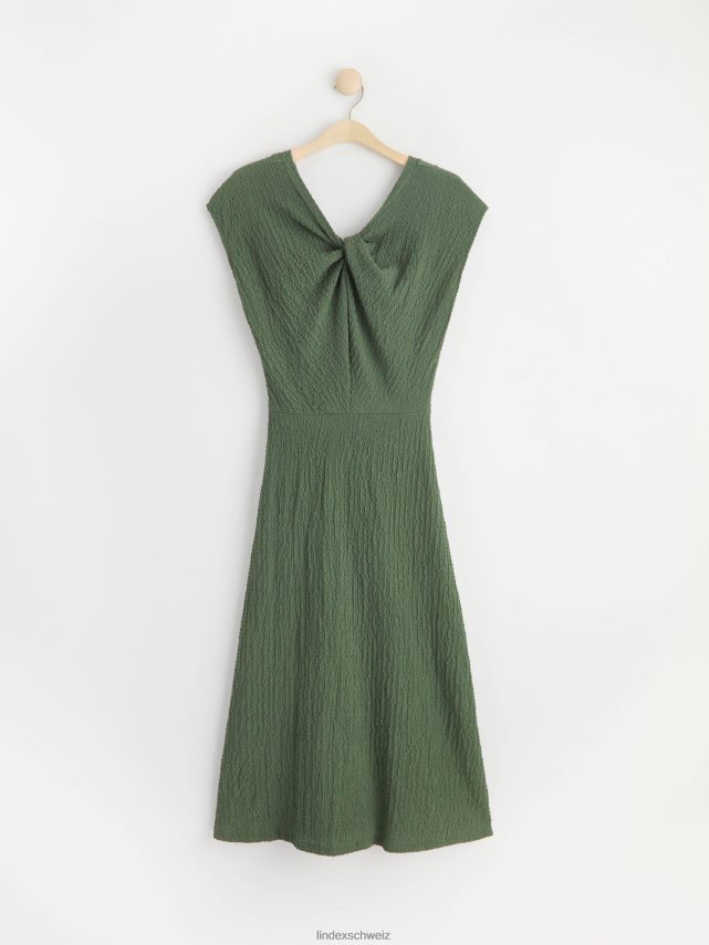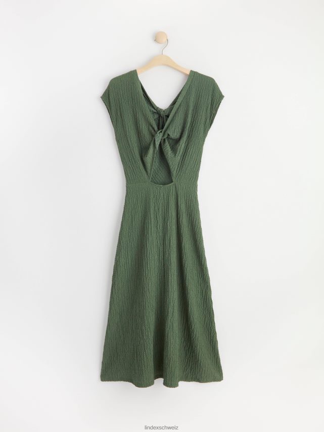 une robe mi-longue sans manches avec un nœud sur le devant et dans le dos et une découpe dans le dos. silhouette ajustée et évasée dans un jersey extensible avec texture.
