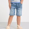 un short pull-up confortable en denim de coton doux et extensible avec une taille classique et des jambes droites. le short a une taille élastiquée réglable et des poches sur le devant et à l’arrière. du déchet à la mode portable. 100 % du coton de ce produit est fabriqué à partir de matériaux recyclés. matériel. cette pièce est confectionnée en coton recyclé. en utilisant du coton recyclé, cela signifie que le coton qui a déjà été cultivé et qui aurait été gaspillé a une autre chance. il est beaucoup plus économe en ressources et en eau par rapport à la culture de nouveau coton.