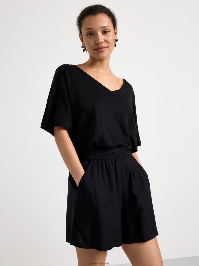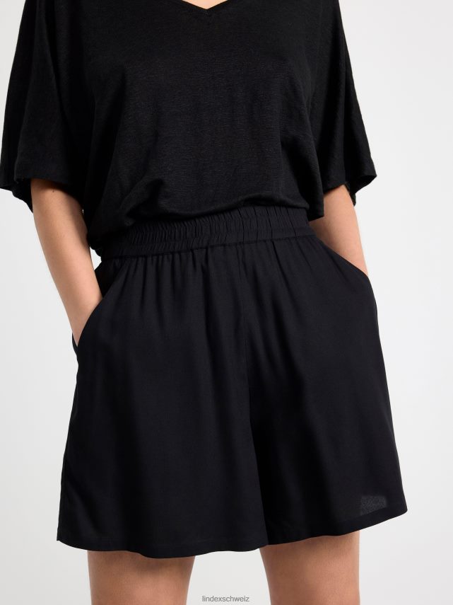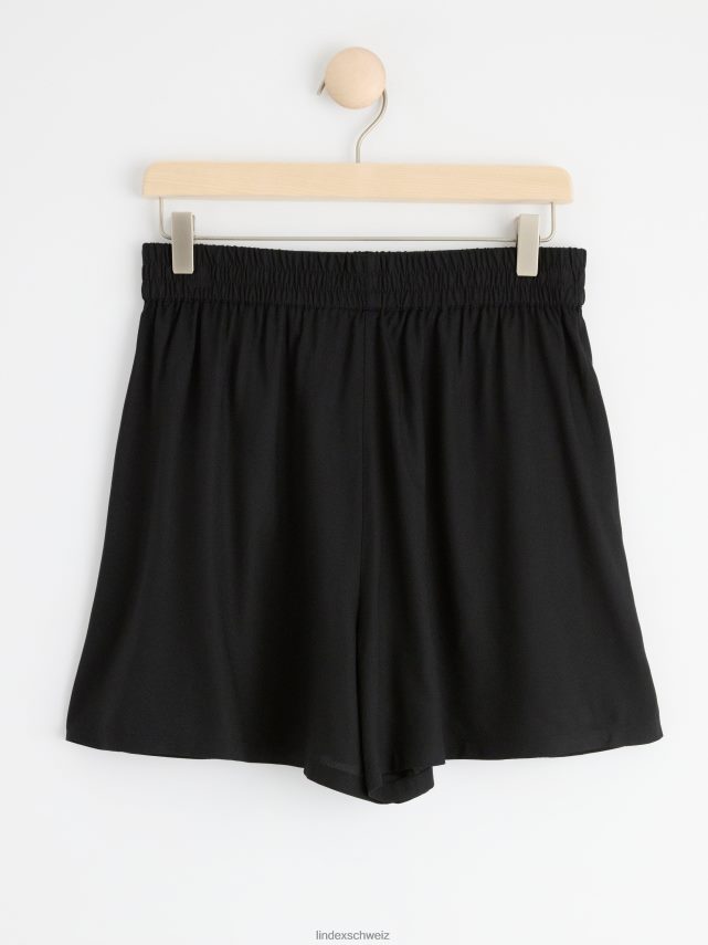 short noir classique en viscose certifiée avec taille élastique et poches latérales. matériel. cette pièce est fabriquée en écovero Lenzing, une option plus durable par rapport à la viscose conventionnelle. le matériau provient d’une sylviculture responsable et est produit avec un impact moindre sur l’environnement.