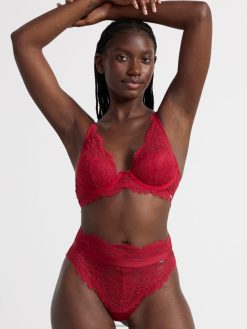 culotte brésilienne taille haute avec bord festonné et bordure en cils.