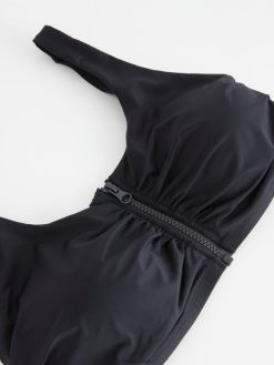 soutien-gorge de bikini prothétique doux et sans armatures en matériaux recyclés, avec fermeture éclair sur le devant et bretelles réglables. les deux bonnets sont équipés de poches pour prothèses. matériel. cette pièce est partiellement réalisée en polyamide recyclé. En utilisant du polyamide recyclé, cela signifie que des matériaux qui autrement auraient été gaspillés ont une autre chance. c’est beaucoup plus économe en ressources que la production de nouveaux matériaux, ce qui le rend meilleur pour l’environnement et réduit l’impact climatique.
