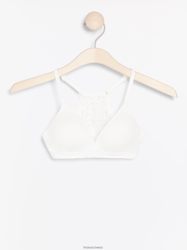 un soutien-gorge doux sans armatures avec des bonnets rembourrés et un dos recouvert de dentelle.