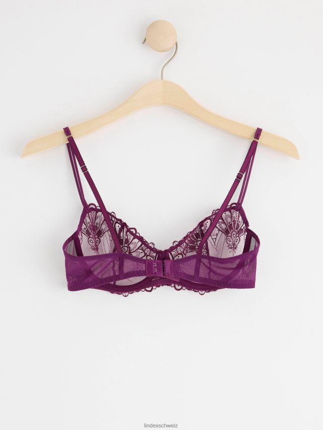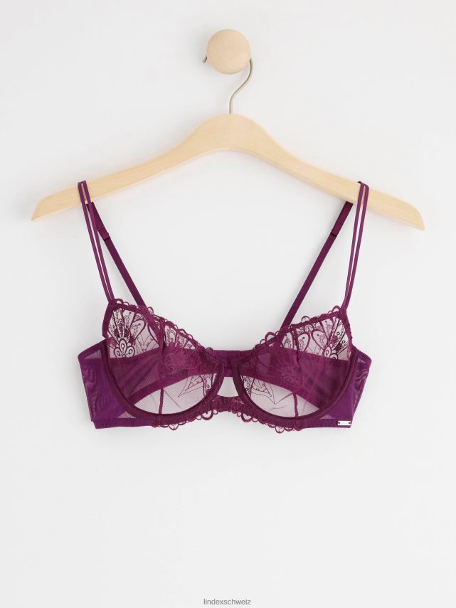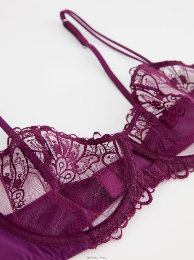 un soutien-gorge à armatures non rembourré avec des détails en maille et en dentelle et une bordure en dentelle festonnée.