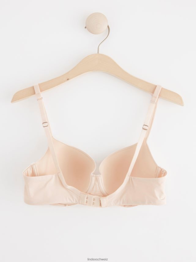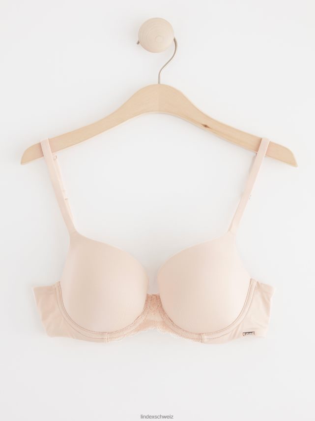 Soutien-gorge t-shirt beige clair avec armatures, joli détail en dentelle sur le devant et rembourrage super doux, ce qui le rend très confortable à porter toute la journée.