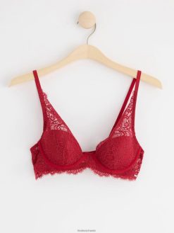 un soutien-gorge t-shirt rembourré avec résille et dentelle florale sur toute la surface.
