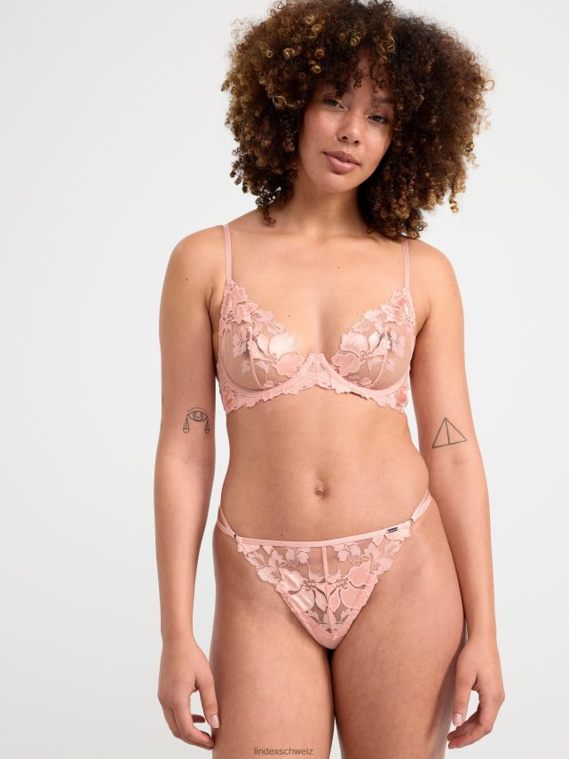 un string taille basse en maille transparente avec des fleurs brodées et des doubles bandes élastiques fines des deux côtés.