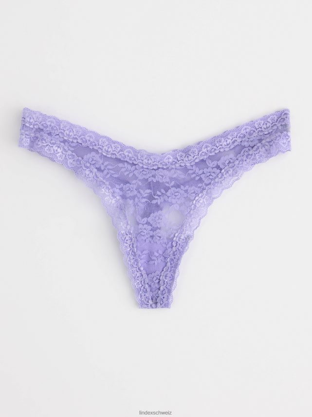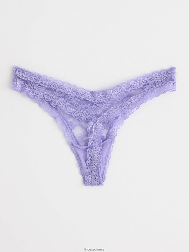 string taille basse avec coupe échancrée et maille et dentelle florale sur toute la surface.
