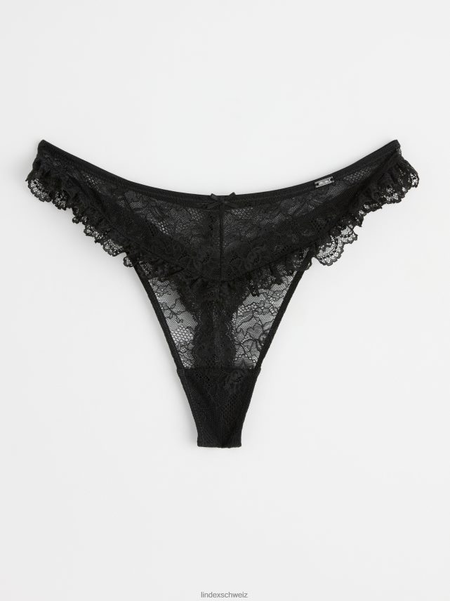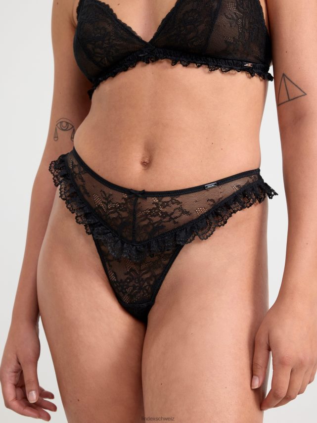 un string en dentelle florale transparente avec de délicats volants sur le devant et dans le dos.