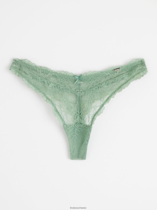 string avec taille classique. fabriqué en maille douce avec de la dentelle.