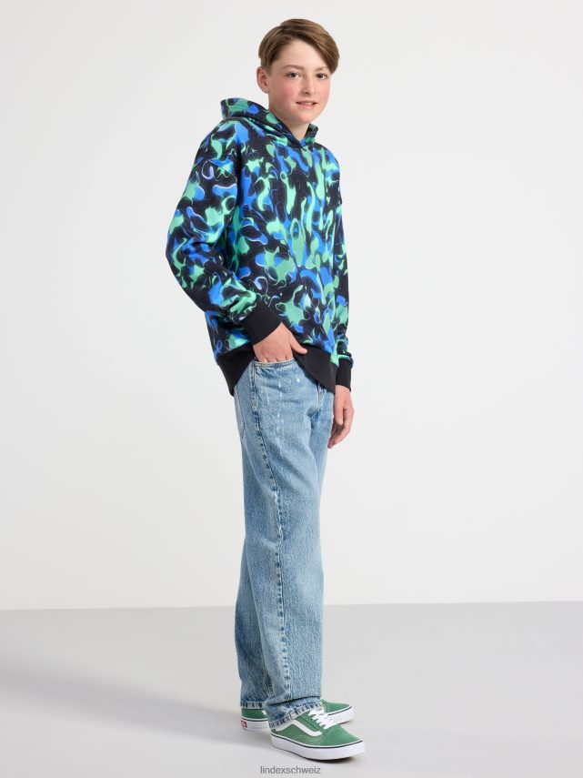 sweat à capuche avec imprimé intégral et intérieur brossé noir Lindex vêtements enfants D44L8F3447