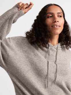 sweat à capuche doux en tricot à manches longues, coupe droite et bord-côte aux poignets et à l’ourlet.