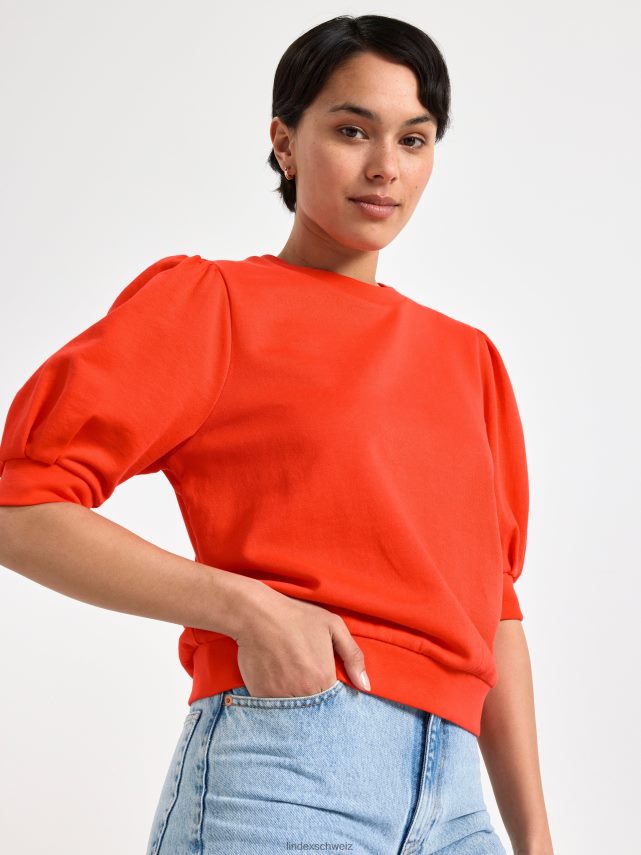 Haut doux en coton recyclé de qualité sweat-shirt avec manches courtes bouffantes et encolure ronde. matériel. cette pièce est partiellement fabriquée en coton recyclé. en utilisant du coton recyclé, cela signifie que le coton qui a déjà été cultivé et qui aurait été gaspillé a une autre chance. c’est beaucoup plus économe en ressources et en eau par rapport à la culture de nouveau coton.