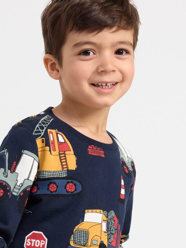 un sweat-shirt doux et confortable avec un imprimé intégral de véhicules de travail. matériel. c’est une pièce certifiée Gots. il est fabriqué à partir de coton biologique et chaque étape de la production a été certifiée de manière indépendante pour garantir qu’elle respecte les exigences sociales et environnementales de Gots (norme mondiale des textiles biologiques).