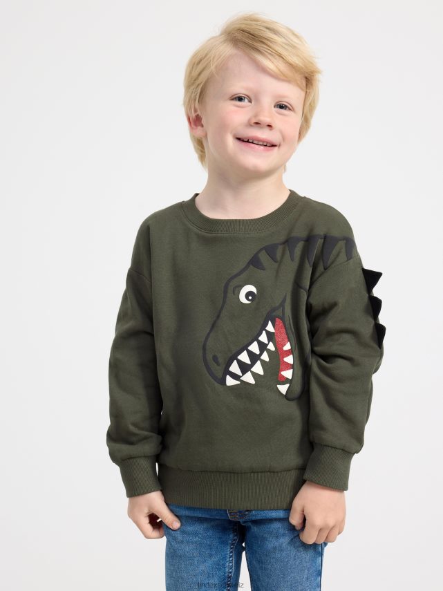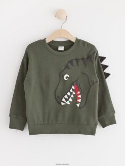 sweat-shirt avec dinosaure vert kaki foncé Lindex vêtements enfants D44L8F3393