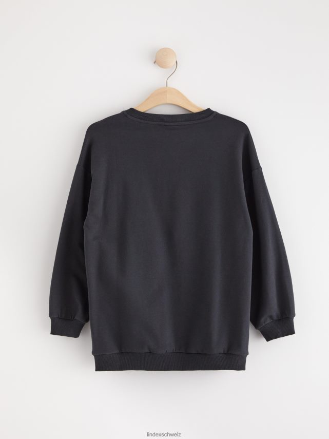 sweat-shirt surdimensionné noir cassé Lindex vêtements enfants D44L8F3390