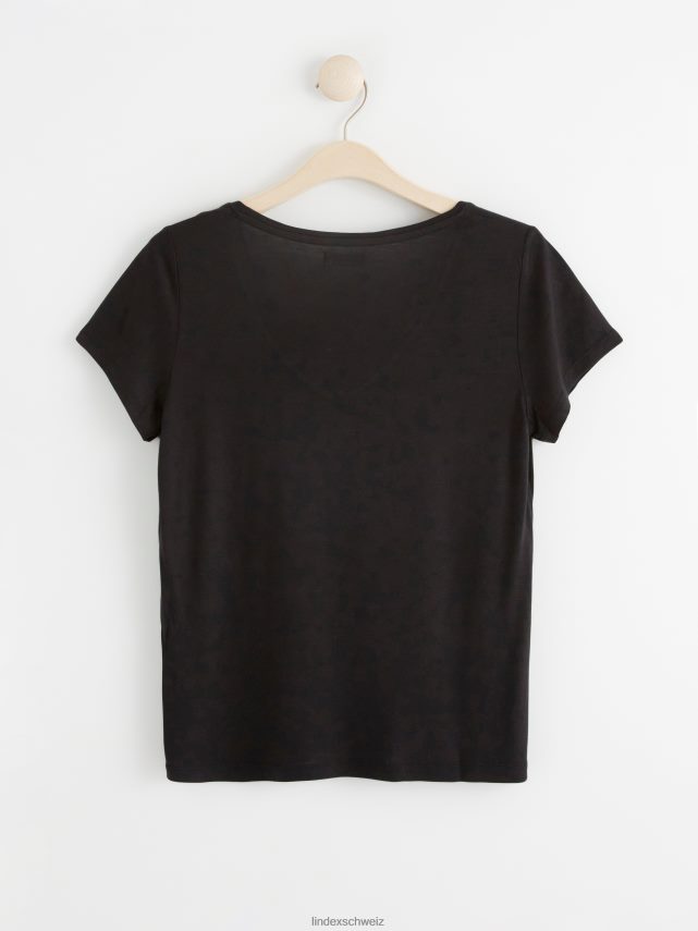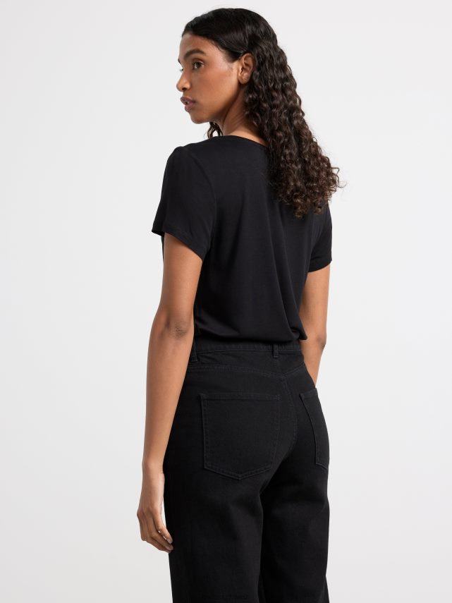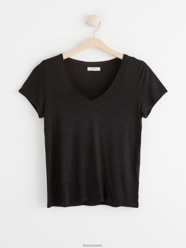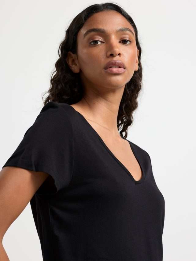 t-shirt à col en V noir Lindex vêtements femmes D44L8F309