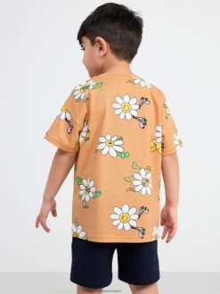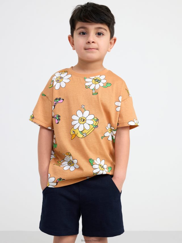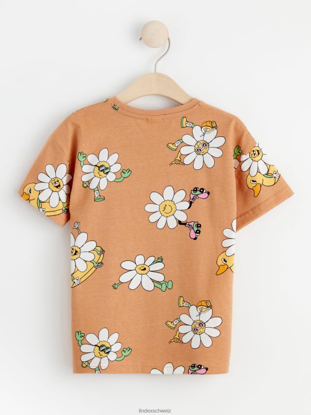 t-shirt avec des fleurs fraîches Beige foncé Lindex vêtements enfants D44L8F2906