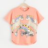 un t-shirt confortable à manches courtes avec un imprimé sur le devant et des épaules descendues pour un look décontracté. matériel. cette pièce est partiellement fabriquée en coton recyclé. en utilisant du coton recyclé, cela signifie que le coton qui a déjà été cultivé et qui aurait été gaspillé a une autre chance. c’est beaucoup plus économe en ressources et en eau par rapport à la culture de nouveau coton.