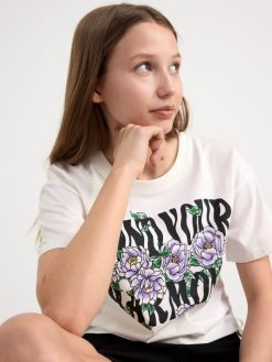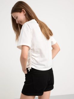un t-shirt confortable et cool dans une coupe courte et avec un imprimé sur le devant et des fronces des deux côtés. matériel. cette pièce est partiellement réalisée en coton biologique. le coton biologique est cultivé sans produits chimiques toxiques ni graines de coton génétiquement modifiées. la culture protège la biodiversité, les écosystèmes et les personnes en utilisant des processus naturels plutôt que des intrants artificiels.