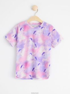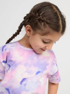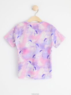 haut doux à manches courtes avec un imprimé licorne intégral. matériel. c’est une pièce certifiée Gots. il est fabriqué à partir de coton biologique et chaque étape de la production a été certifiée de manière indépendante pour garantir qu’elle respecte les exigences sociales et environnementales de gots (norme mondiale des textiles biologiques).