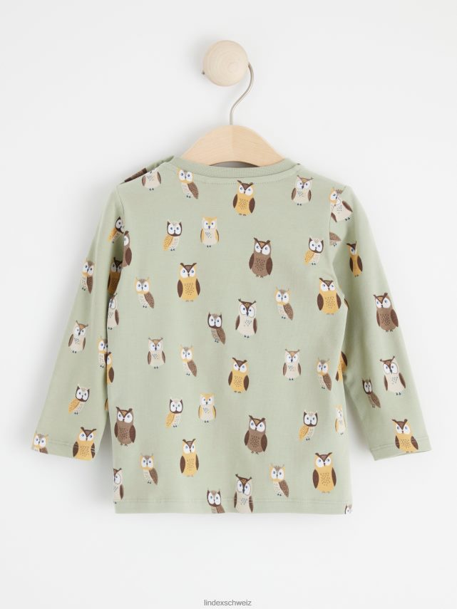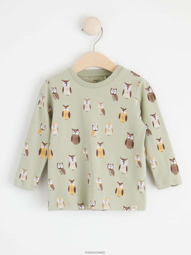un haut confortable à manches longues avec un imprimé hibou sur l’ensemble. matériel. c’est une pièce certifiée Gots. il est fabriqué à partir de coton biologique et chaque étape de la production a été certifiée de manière indépendante pour garantir qu’elle respecte les exigences sociales et environnementales de Gots (norme mondiale des textiles biologiques).