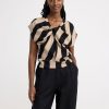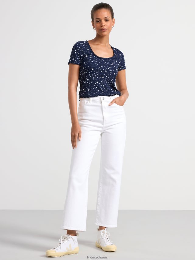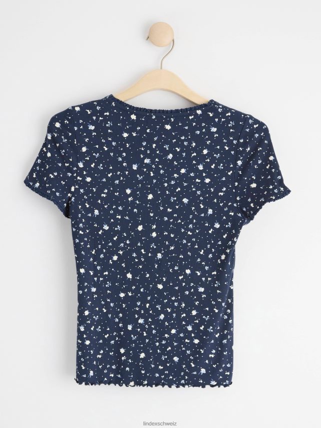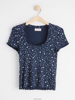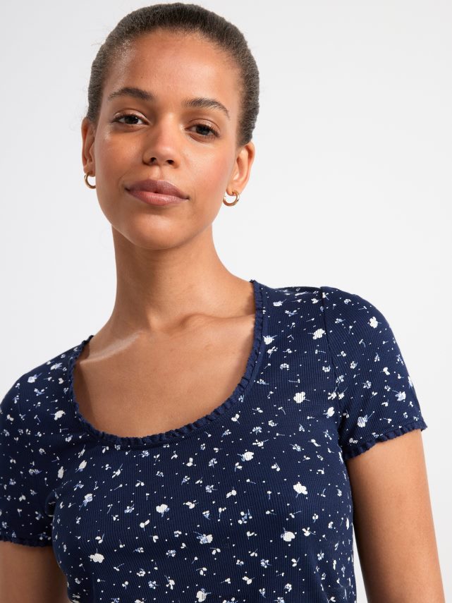 un haut à manches courtes doux et élégant dans une matière côtelée et avec un imprimé floral intégral. matériel. cette pièce est basée une fois de plus sur sodra, une nouvelle matière première innovante en fibre de viscose, où des textiles recyclés sont combinés avec du bois issu de forêts gérées de manière responsable. Oncemore est un matériau de haute qualité et est produit avec un impact moindre sur l’environnement par rapport aux matières premières en fibre de viscose conventionnelles.