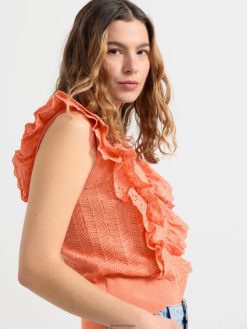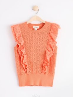 un haut sans manches doux en tricot à motif avec des volants en broderie anglaise tissée. une encolure ronde et un large ourlet côtelé avec bord festonné. matériel. cette pièce est partiellement confectionnée en lenzing ecovero, une option plus durable par rapport à la viscose conventionnelle. le matériau provient d’une foresterie responsable et est produit avec un impact moindre sur l’environnement.