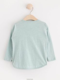 tunique douce en coton à manches longues, encolure ronde, motif all-over et taille froncée élastiquée.