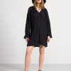 Tunique élégante à manches longues bouffantes et col en V, en coton doux avec broderie all-over.